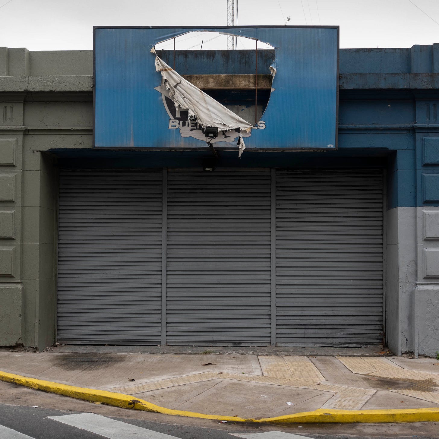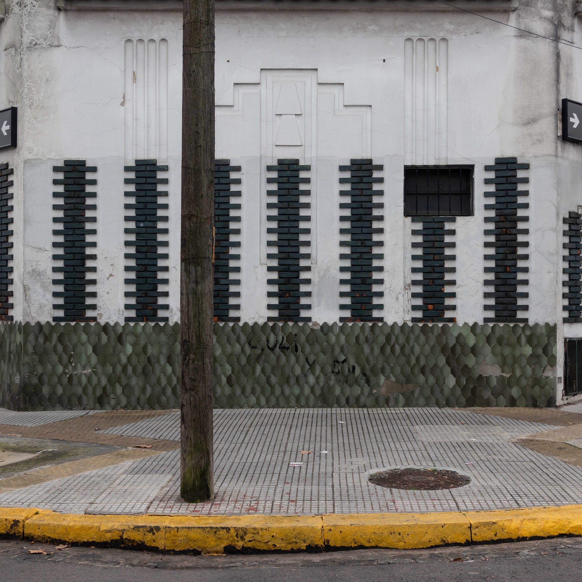Curiously, the book’s title points in another direction, which, according to Travnik, emerged out of conversations with the curator Alexis Fabry, who associated the picture’s abstract qualities with the energetic paintings of Informalismo, a midcentury artistic movement characterized by gestural abstraction and thick layers of impasto that emphasized the materiality of the picture plane. Indeed, it is possible to see echoes of this style in a few pictures, like the Art Deco building that has suffered a lingering struggle between cleaners and graffiti artists. Yet, this art-historical allusion might be apparent only to those who visited the exhibition at the Fundación Larivière that featured the whole series plus a couple of paintings by some of the movement’s most renowned proponents, Clorindo Testa and Noemí Di Benedetto. Otherwise, while not necessarily forced, the connection with Informalismo feels merely anecdotal.